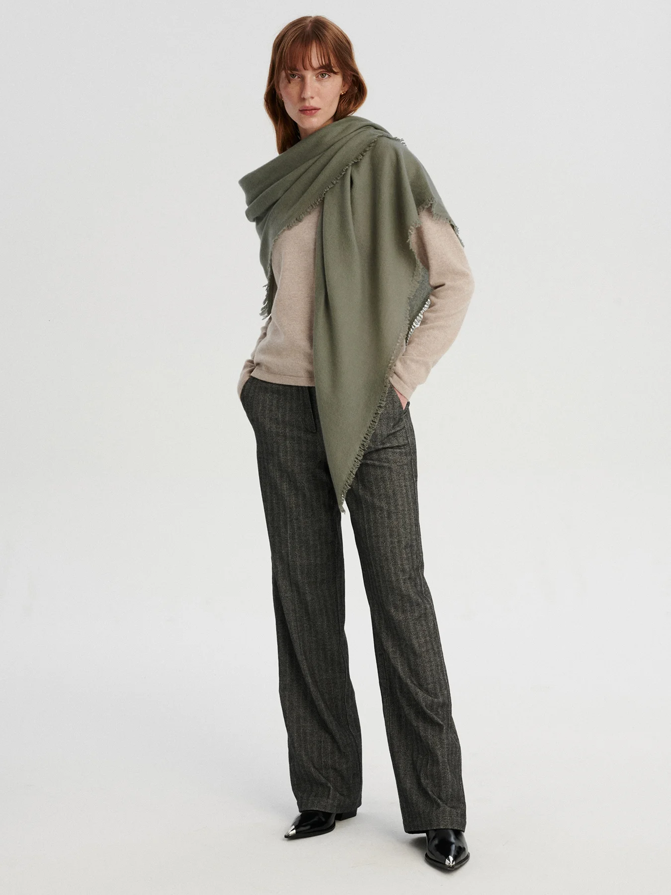 AMA kaszmirowa chusta oliwka