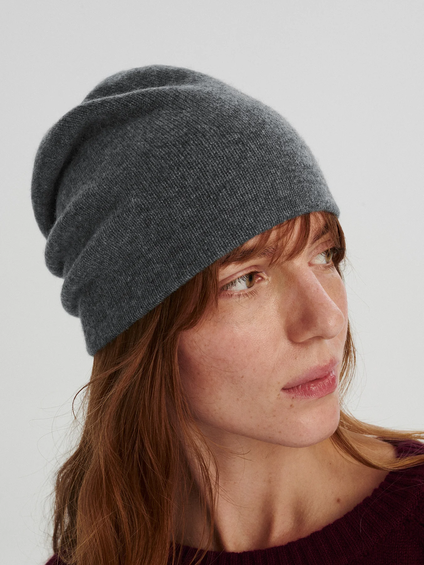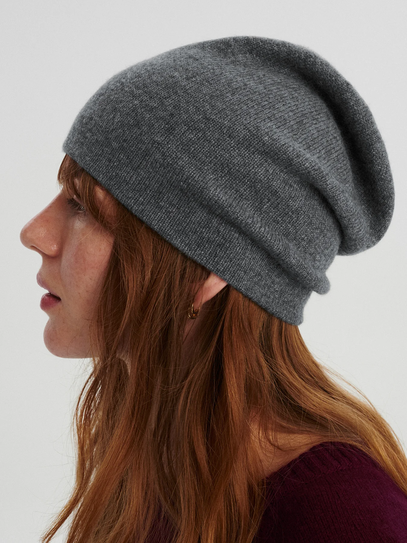 Gładka, kaszmirowa czapka, która zachwyca puszystością i otula ciepłem bez przegrzewania. Mimo podwójnej warstwy jest bardzo lekka i tak wygodna, że zapomnisz, że masz ją na sobie. Możesz nosić ją na dwa sposoby – albo z lekkim, luźnym zapasem z tyłu głowy albo wywiniętą, dzięki czemu układa się gładko na głowie, dając na czole podwójną warstwę ciepła.