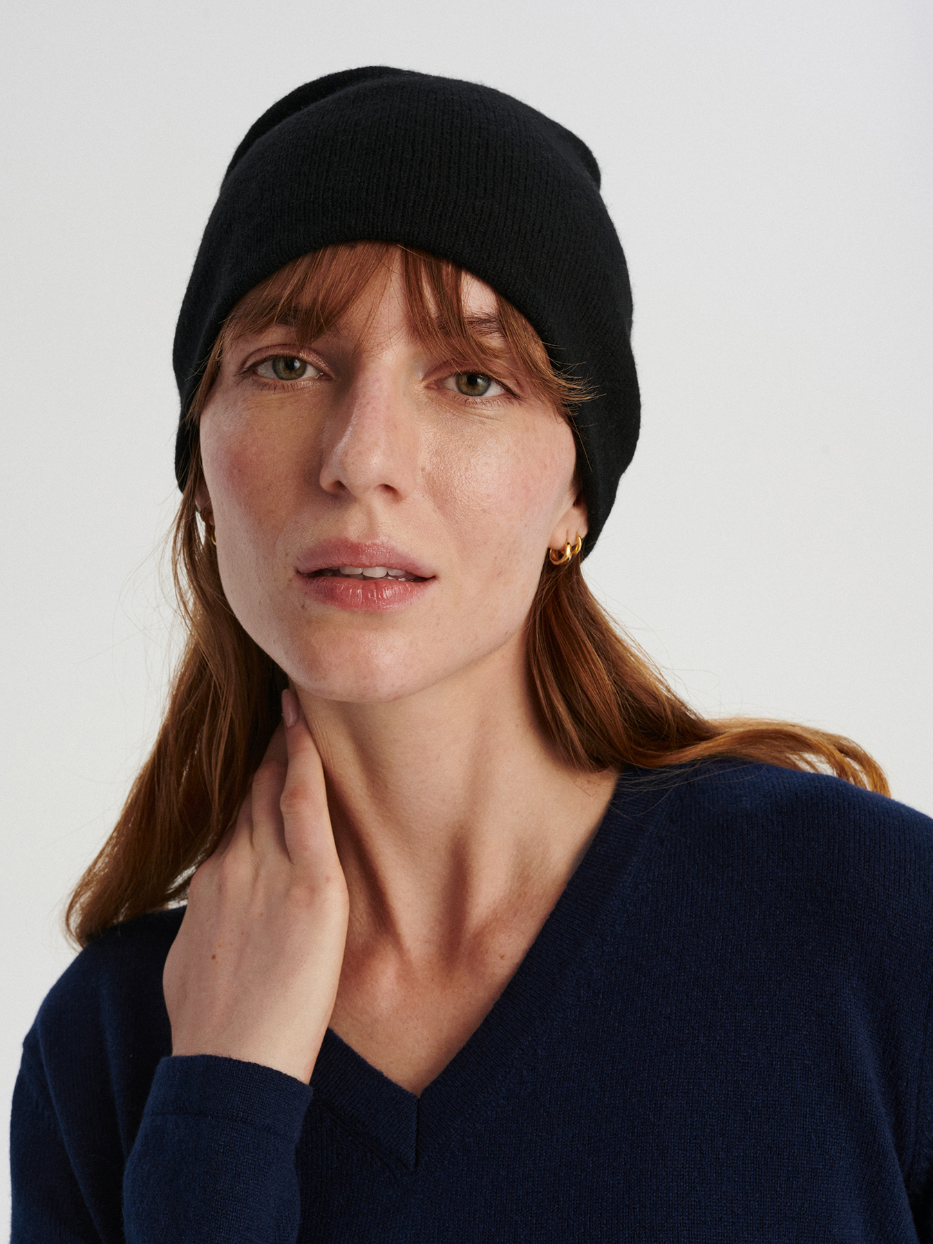 Gładka, kaszmirowa czapka, która zachwyca puszystością i otula ciepłem bez przegrzewania. Mimo podwójnej warstwy jest bardzo lekka i tak wygodna, że zapomnisz, że masz ją na sobie. Możesz nosić ją na dwa sposoby – albo z lekkim, luźnym zapasem z tyłu głowy albo wywiniętą, dzięki czemu układa się gładko na głowie, dając na czole podwójną warstwę ciepła.