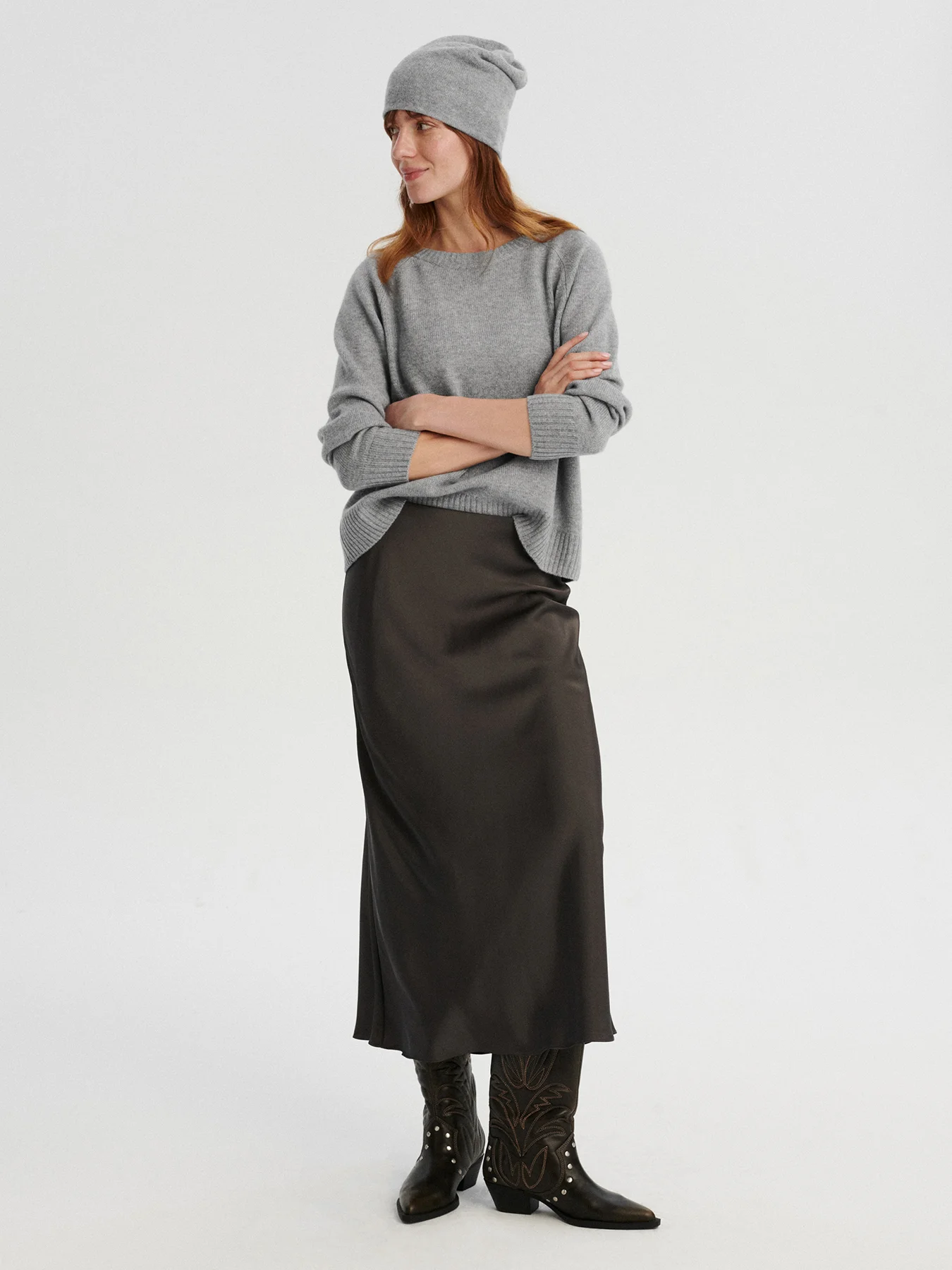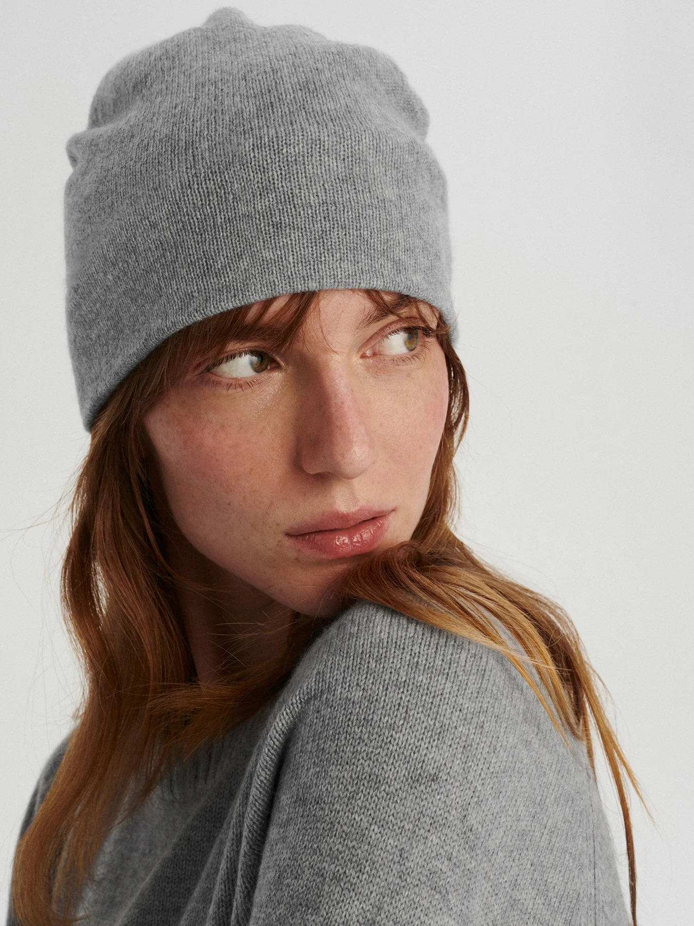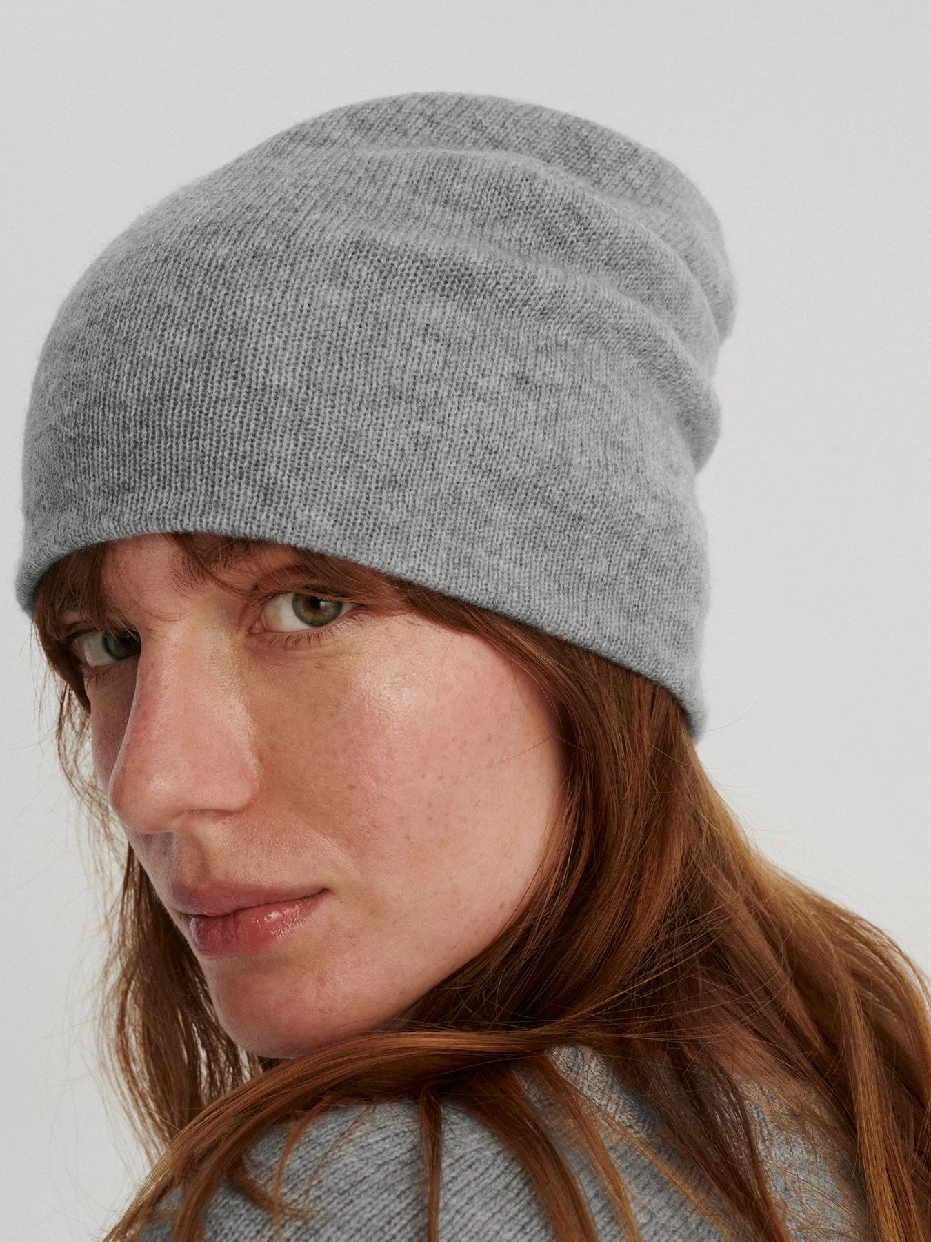Gładka, kaszmirowa czapka, która zachwyca puszystością i otula ciepłem bez przegrzewania. Mimo podwójnej warstwy jest bardzo lekka i tak wygodna, że zapomnisz, że masz ją na sobie. Możesz nosić ją na dwa sposoby – albo z lekkim, luźnym zapasem z tyłu głowy albo wywiniętą, dzięki czemu układa się gładko na głowie, dając na czole podwójną warstwę ciepła.