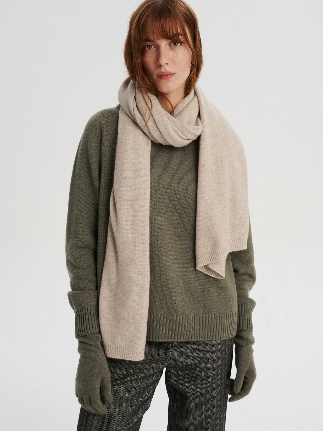 MABU kaszmirowy szal dzianinowy chłodny beż
