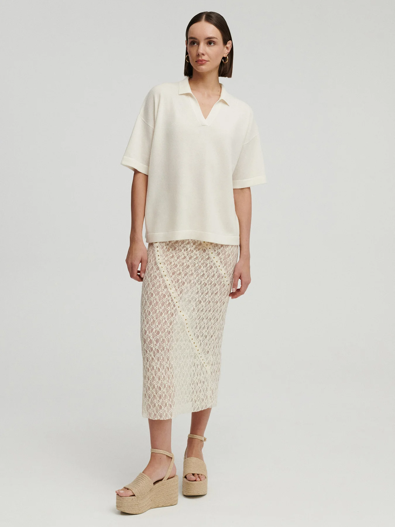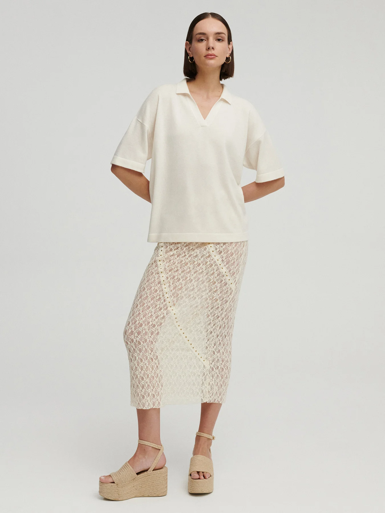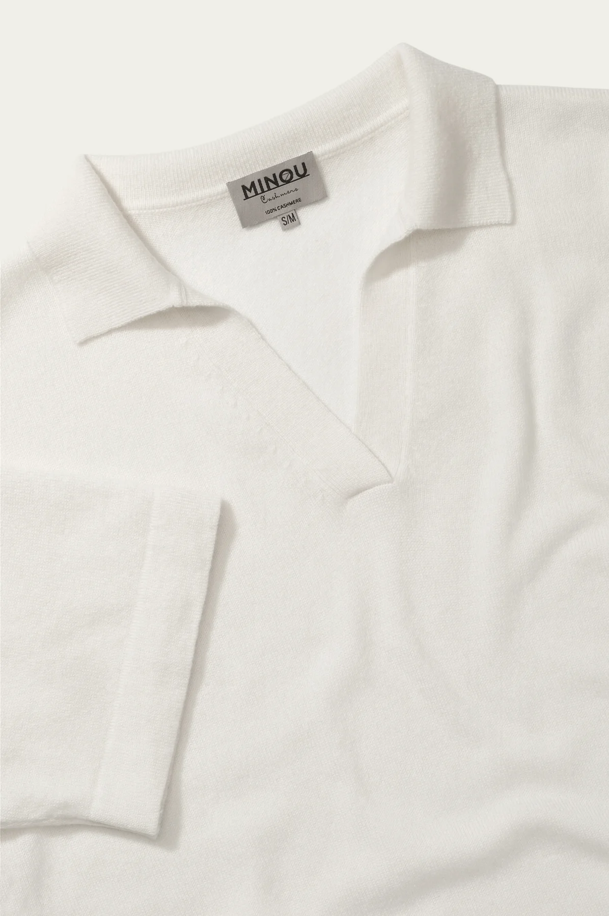 Poznaj kaszmirowe polo KIMI – do sprawdzonych proporcji naszego kaszmirowego T-shirtu LULO dodałyśmy zgrabny kołnierzyk, tworząc luksusową wersję lekkiego polo. Ten model łączy w sobie swobodę klasycznego kroju z wyrafinowanym wykończeniem w postaci kołnierzyka i dekoltu o idealnej głębokości.
