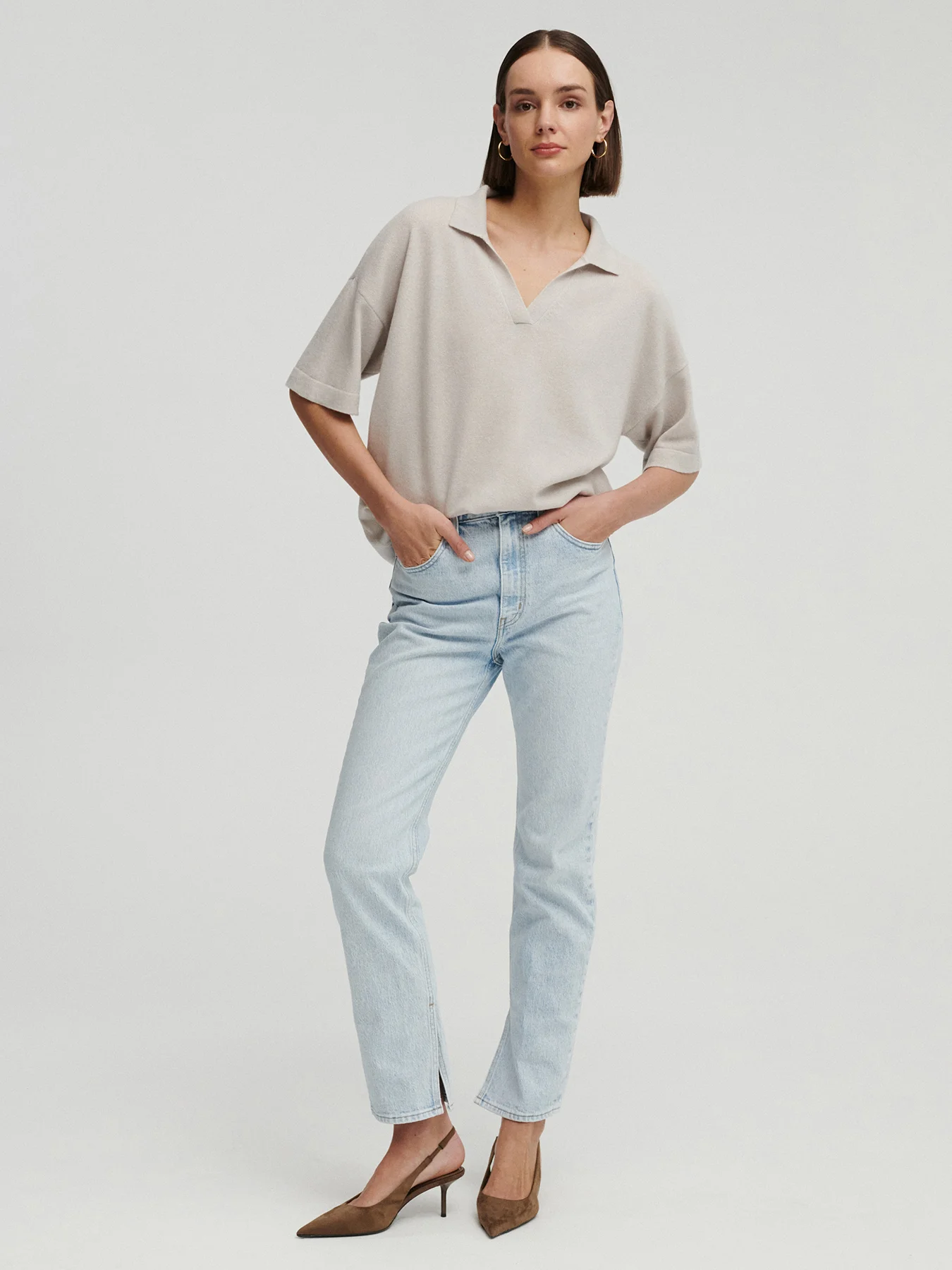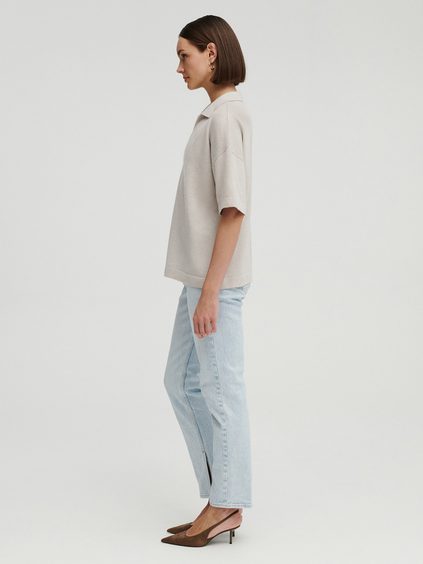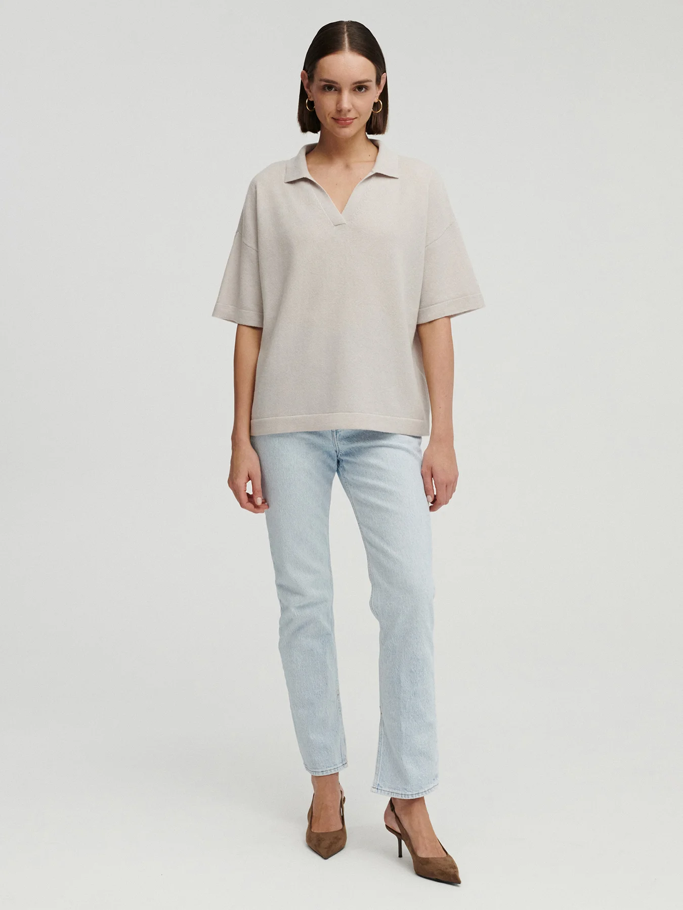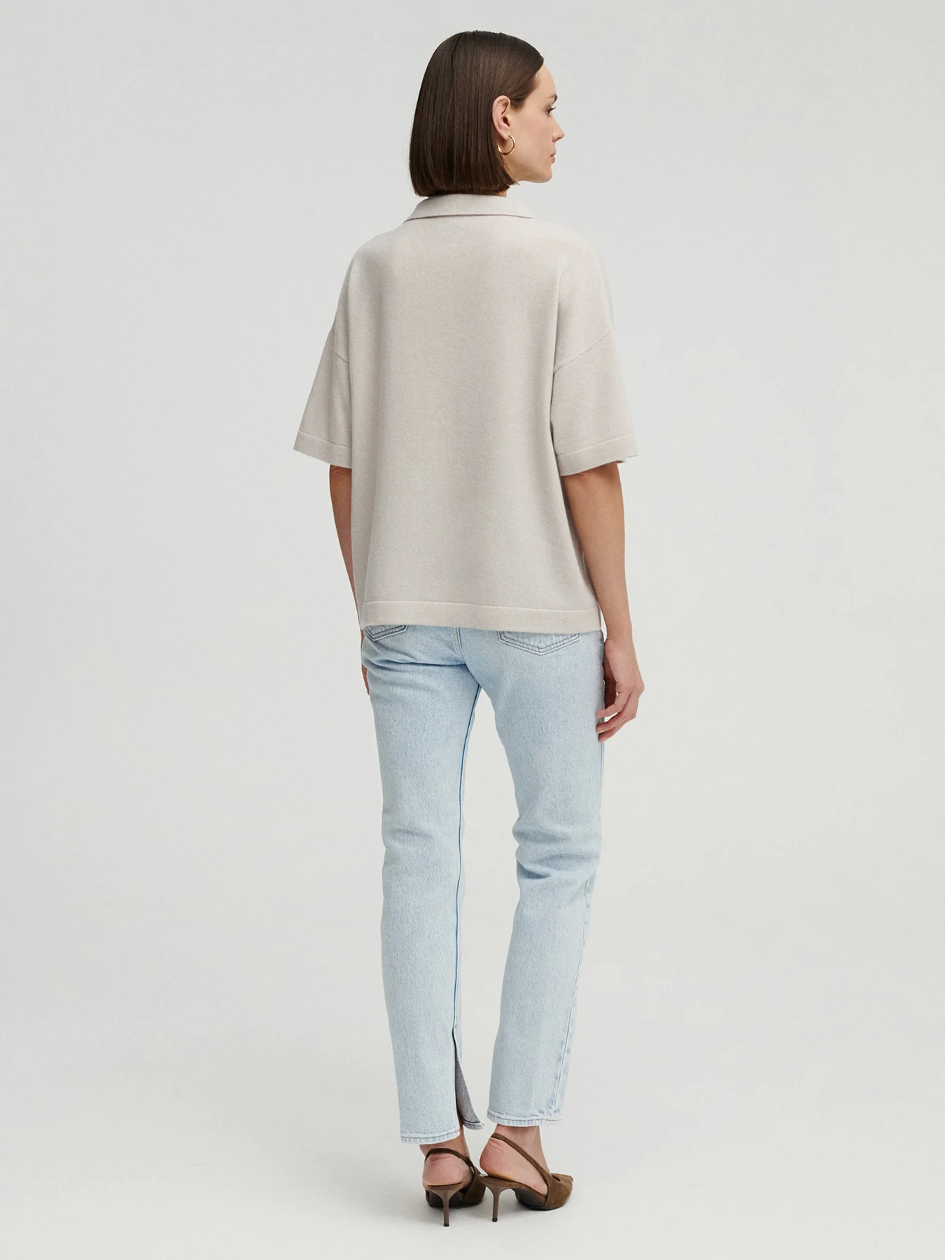 Poznaj kaszmirowe polo KIMI – do sprawdzonych proporcji naszego kaszmirowego T-shirtu LULO dodałyśmy zgrabny kołnierzyk, tworząc luksusową wersję lekkiego polo. Ten model łączy w sobie swobodę klasycznego kroju z wyrafinowanym wykończeniem w postaci kołnierzyka i dekoltu o idealnej głębokości.