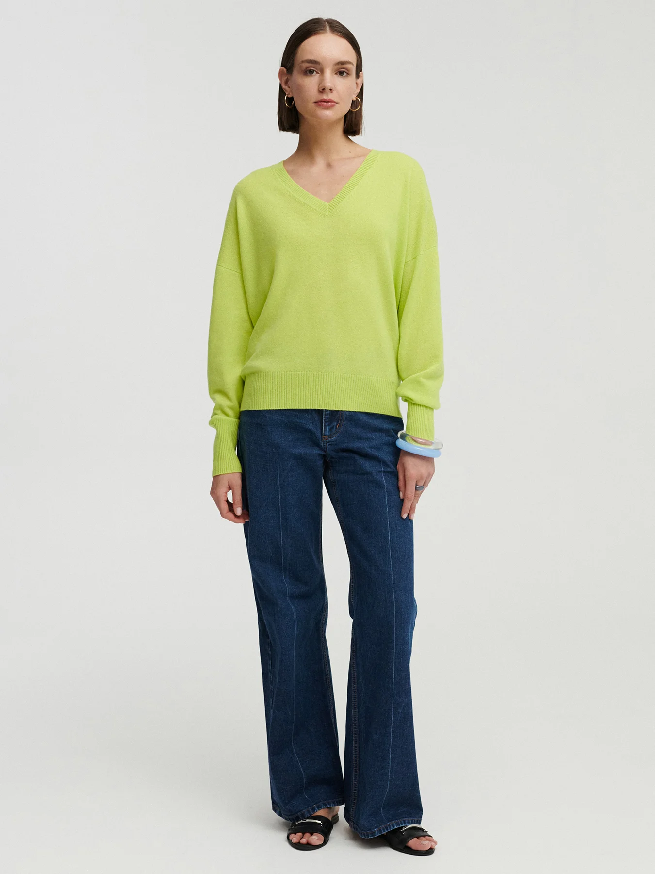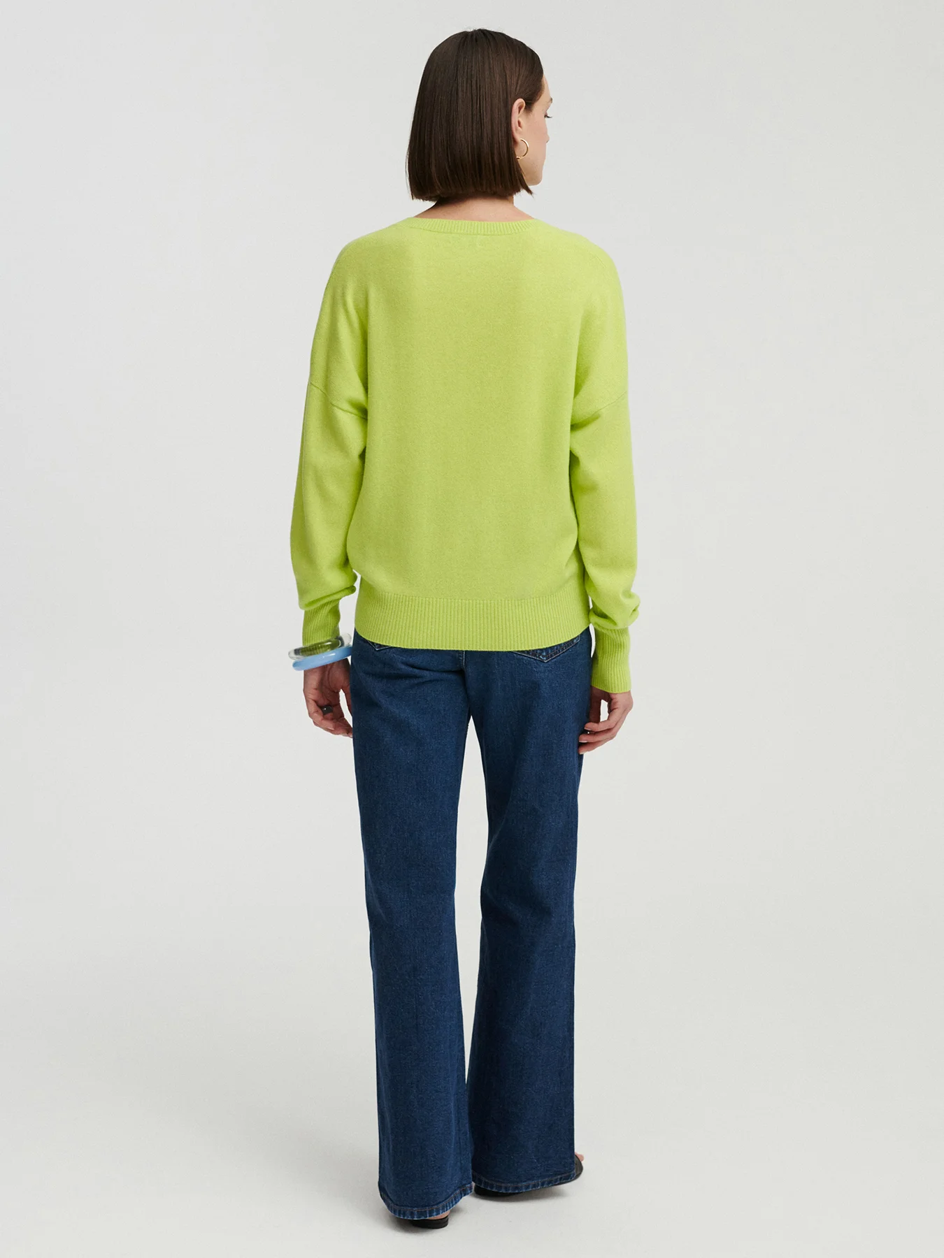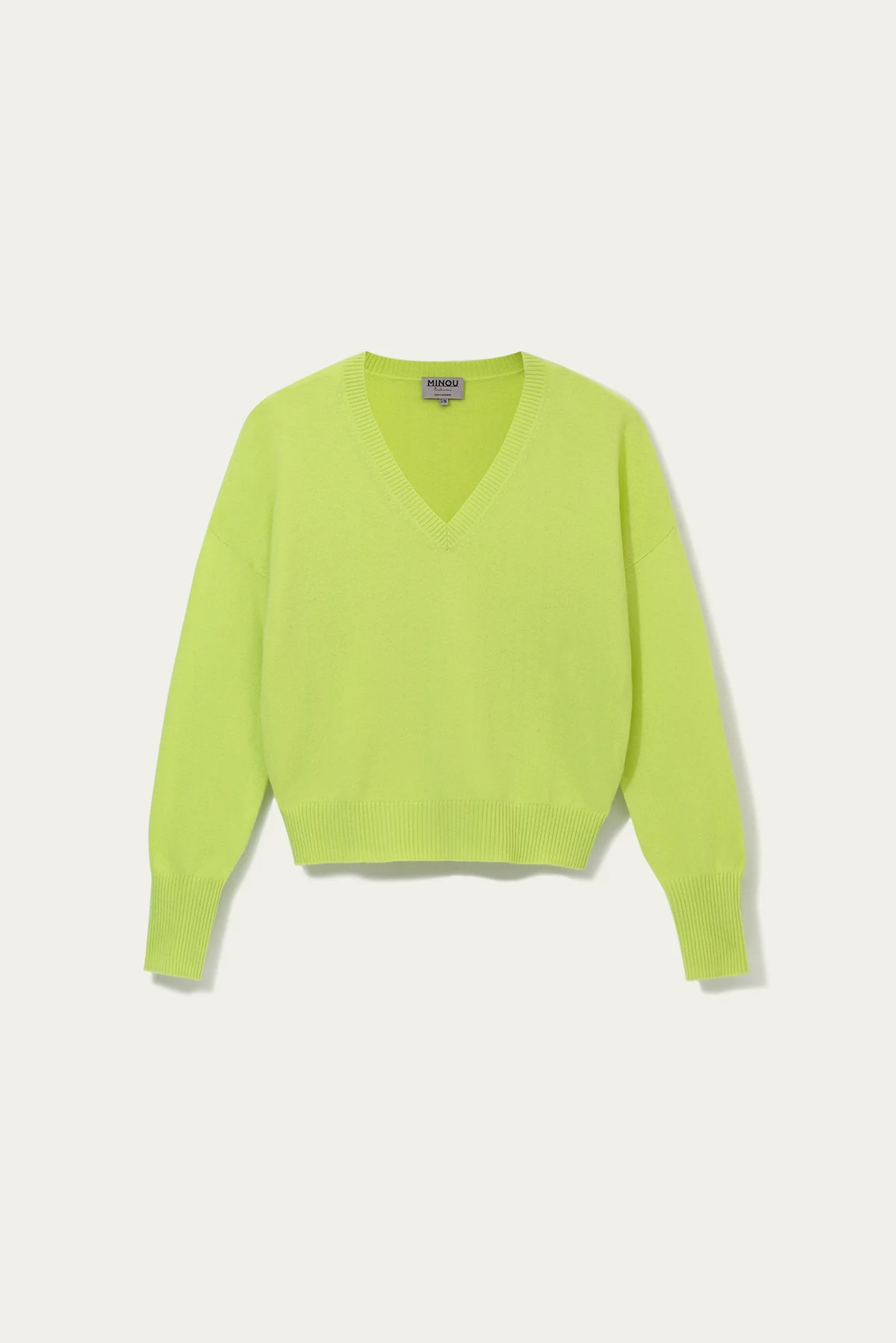*KOLOR LIMITOWANY* TELLA kaszmirowy sweter z dekoltem w serek limonka