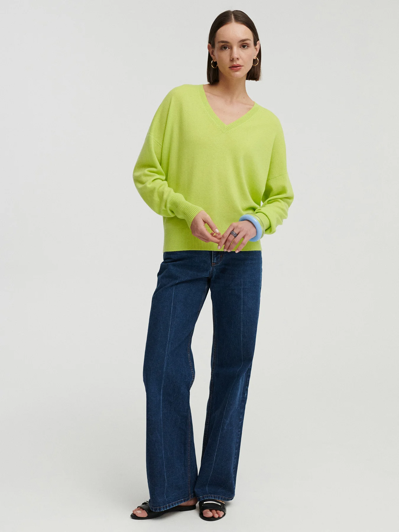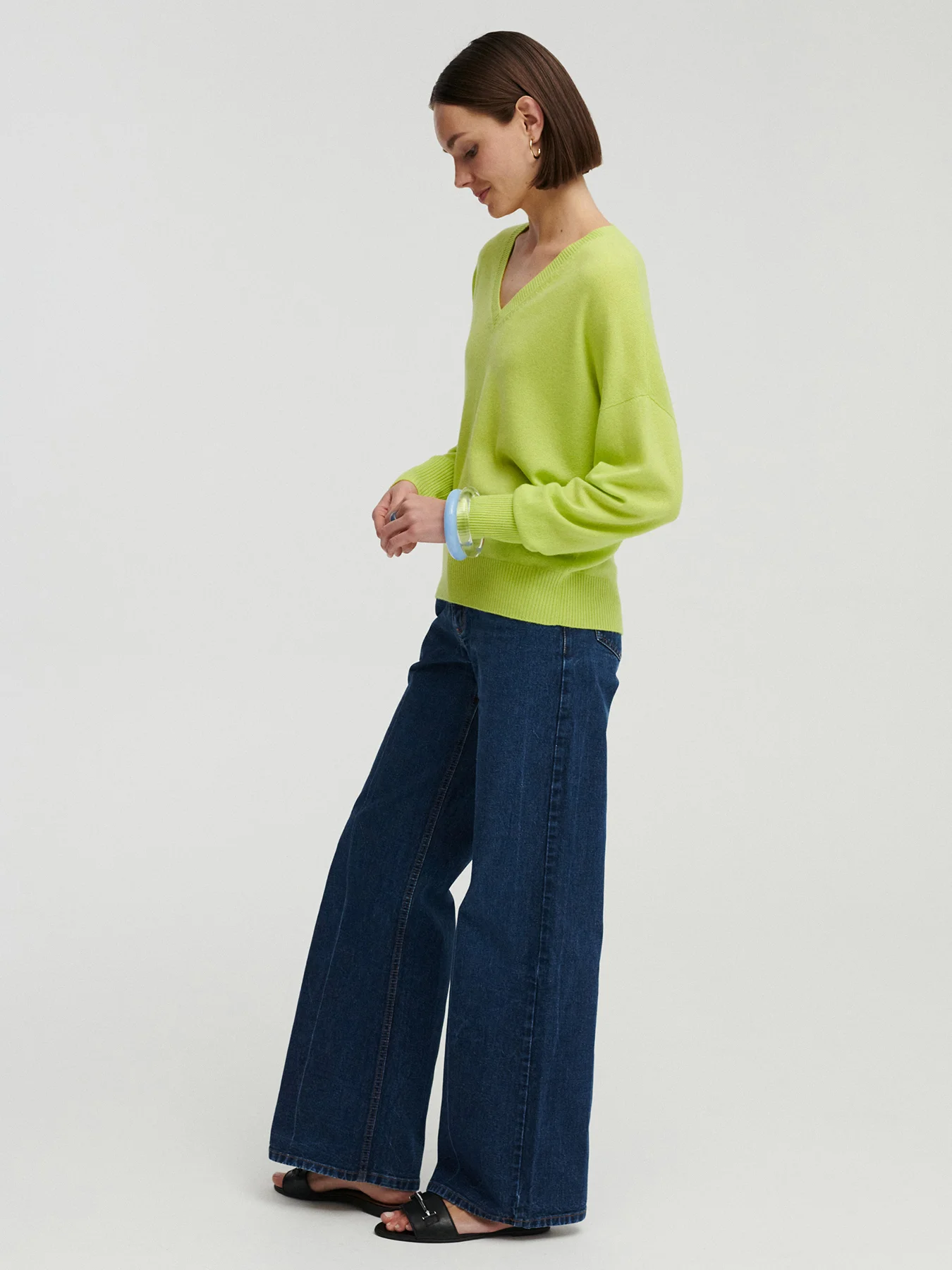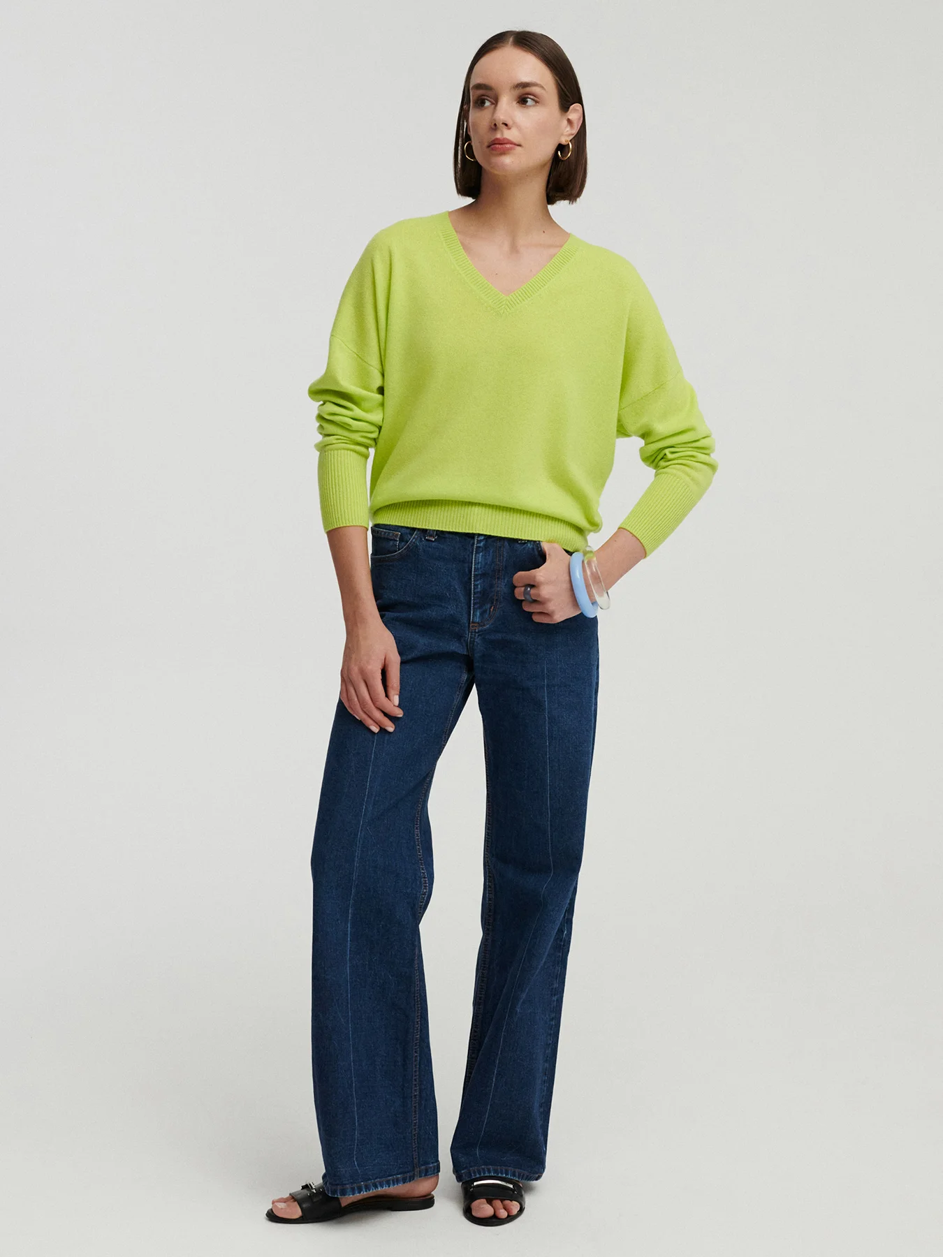 *KOLOR LIMITOWANY* TELLA kaszmirowy sweter z dekoltem w serek limonka