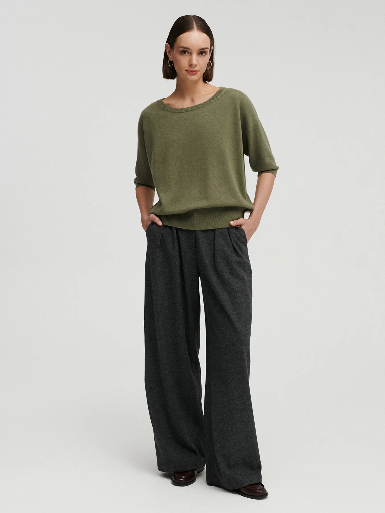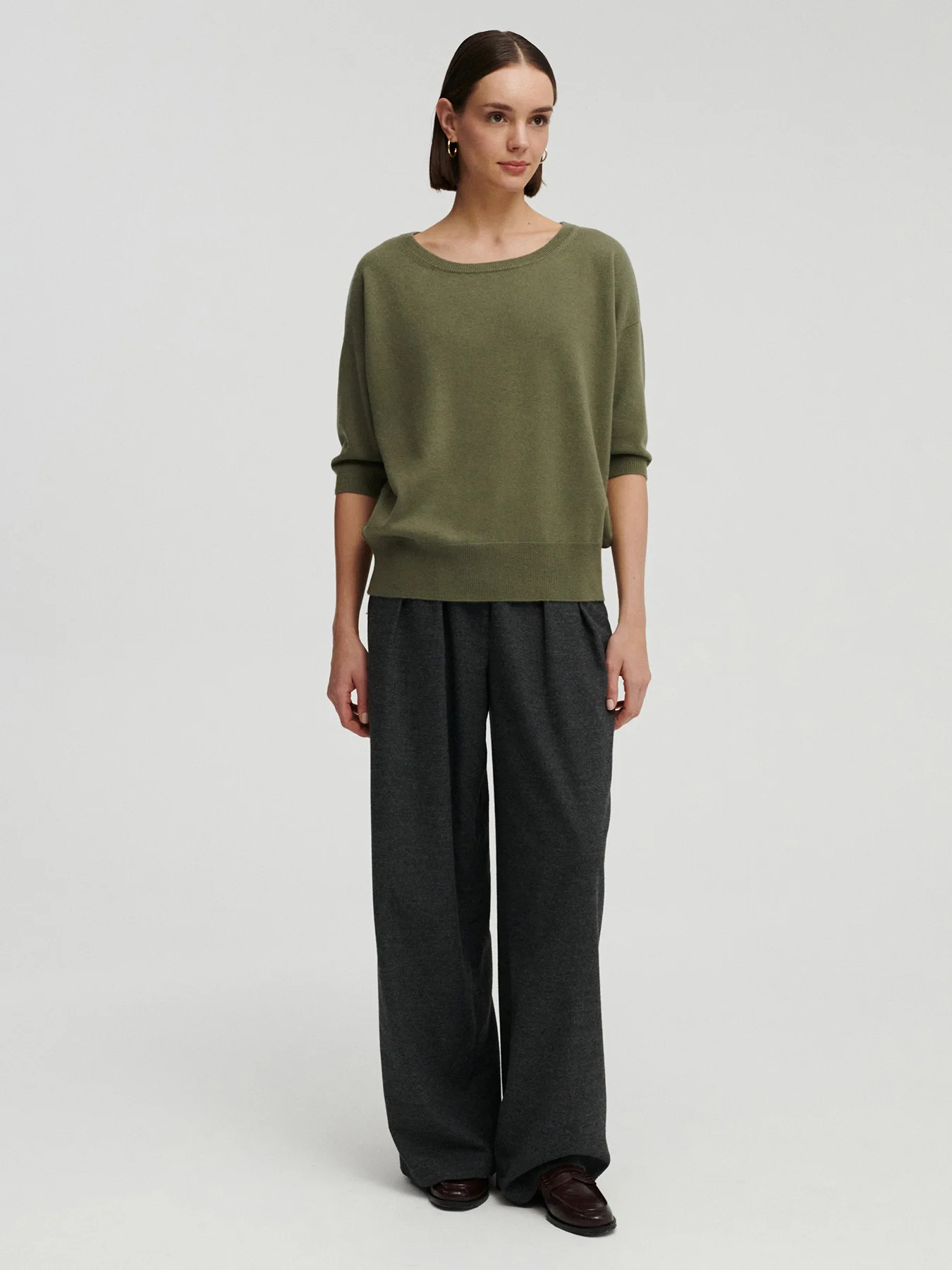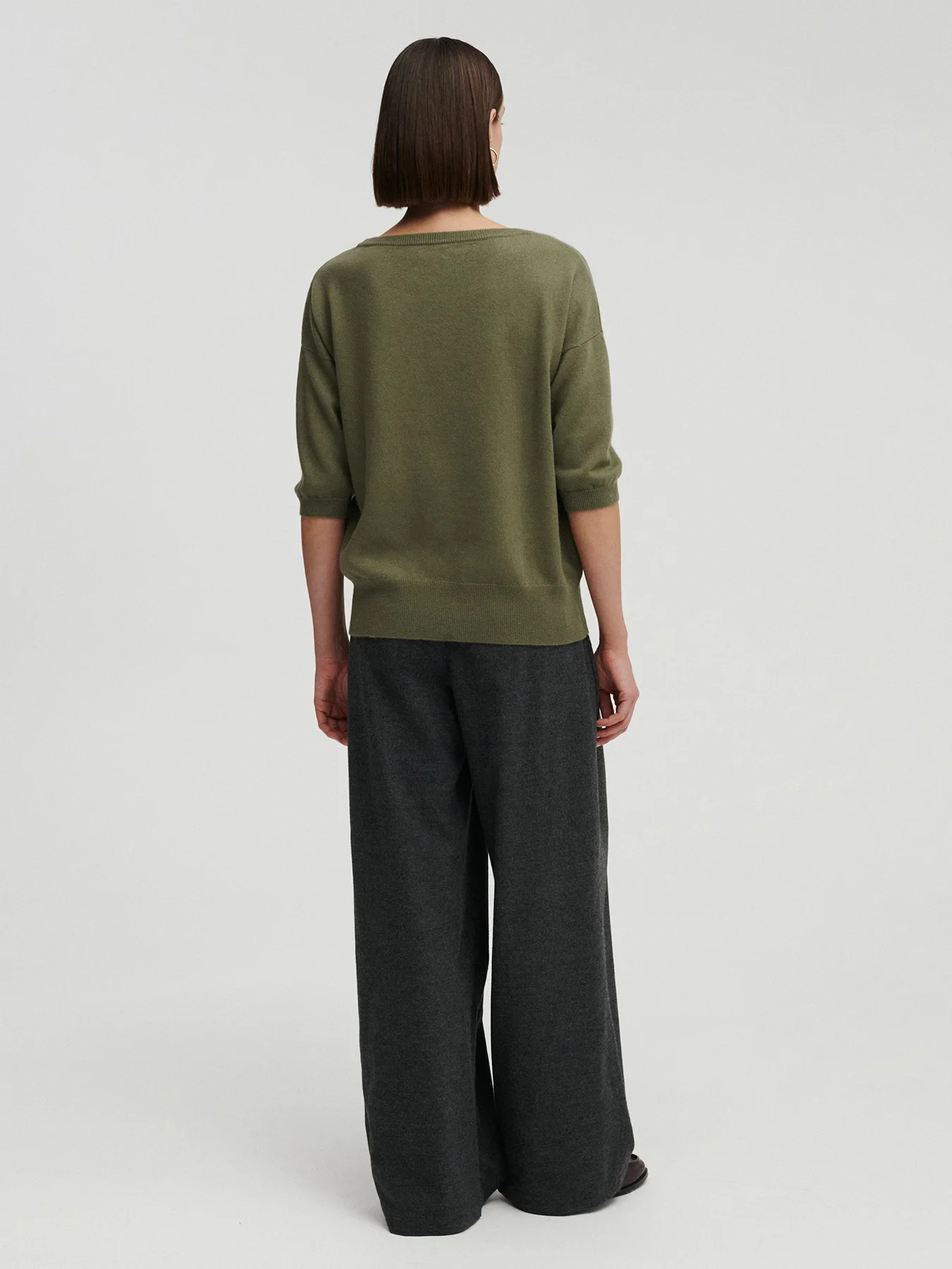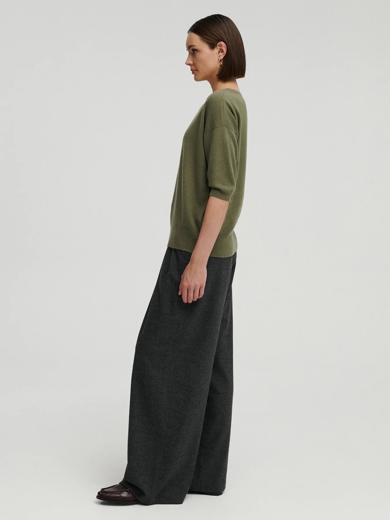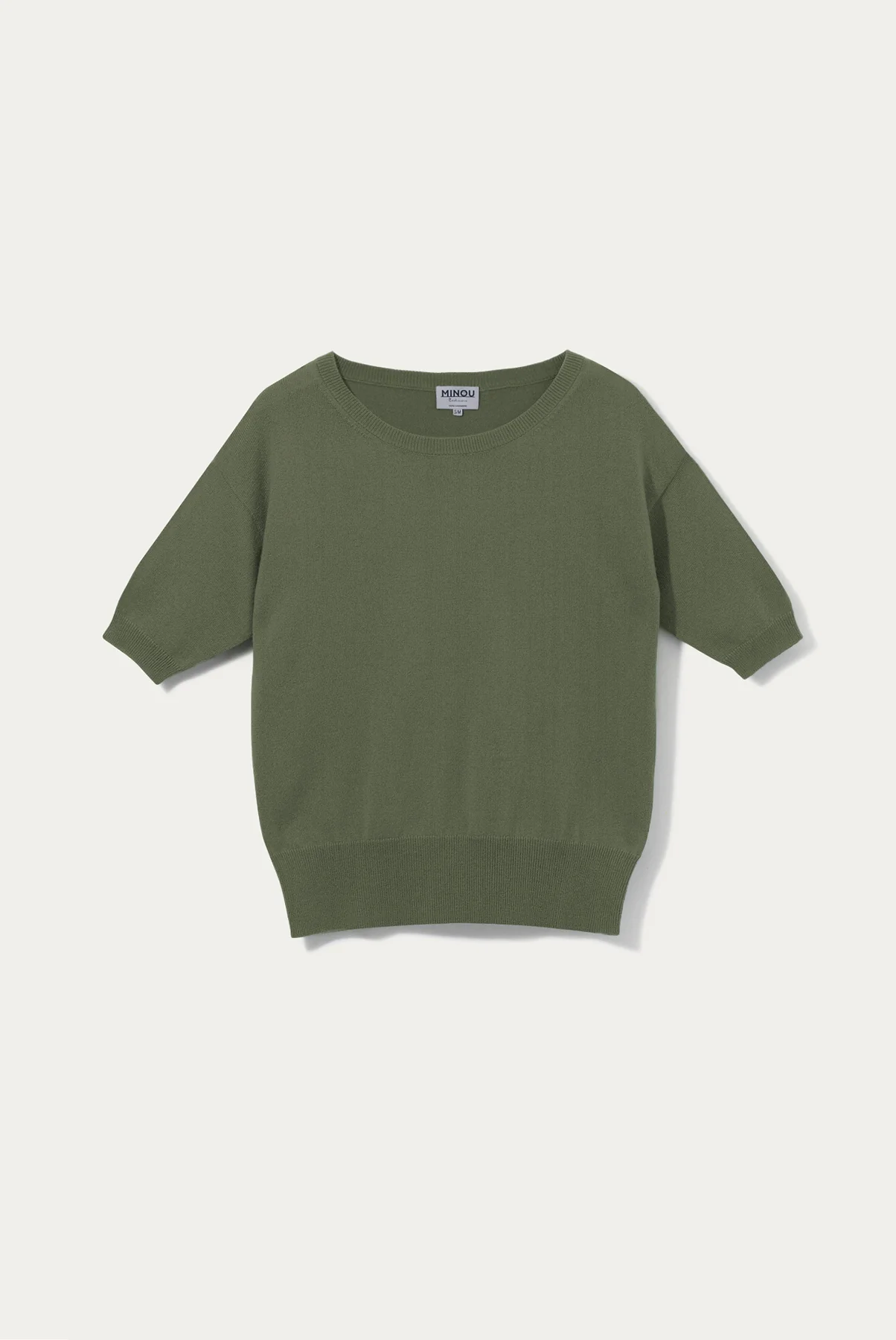 NEMA kaszmirowy sweter z krótkim rękawem oliwka