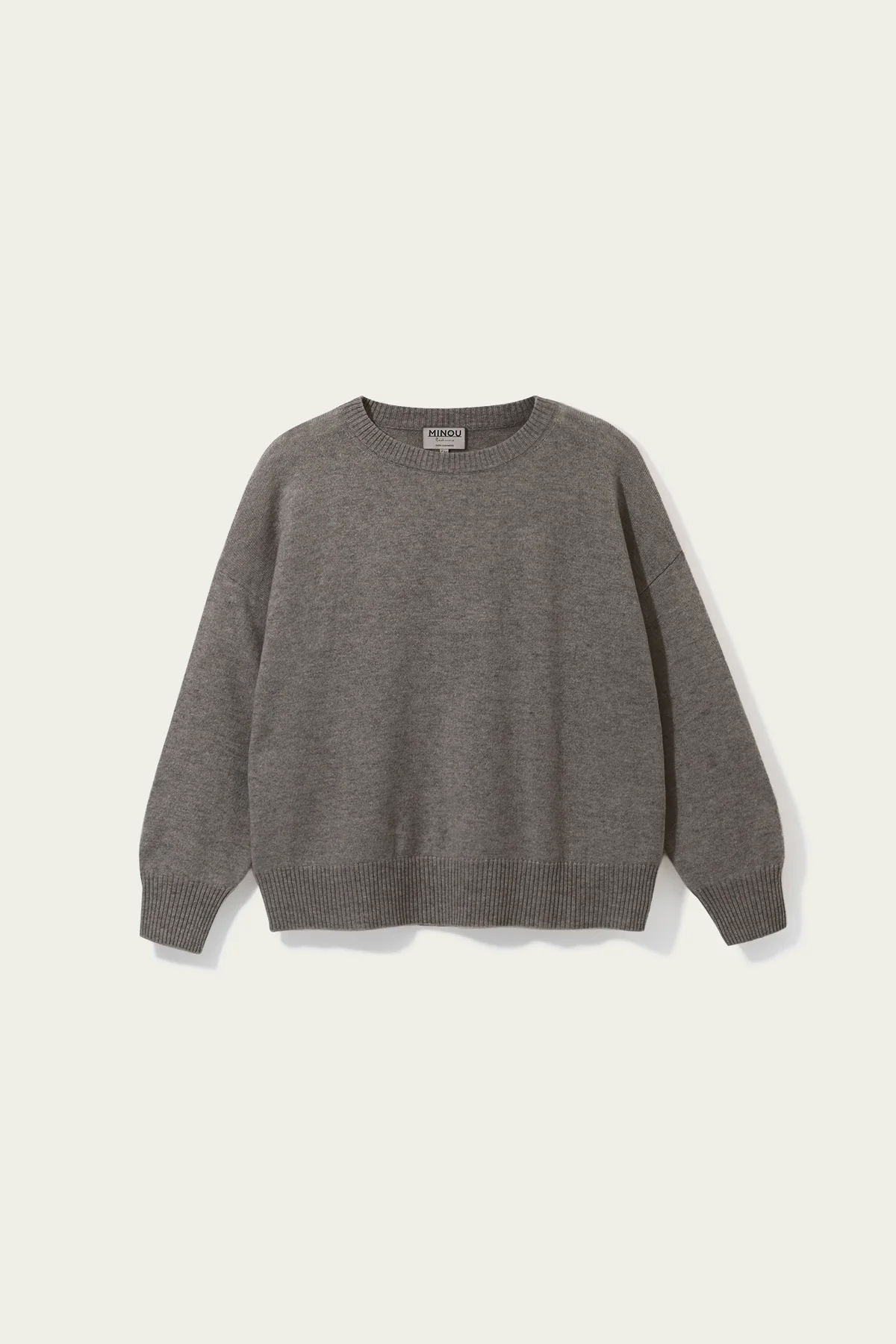 SELA kaszmirowy sweter z okrągłym dekoltem taupe