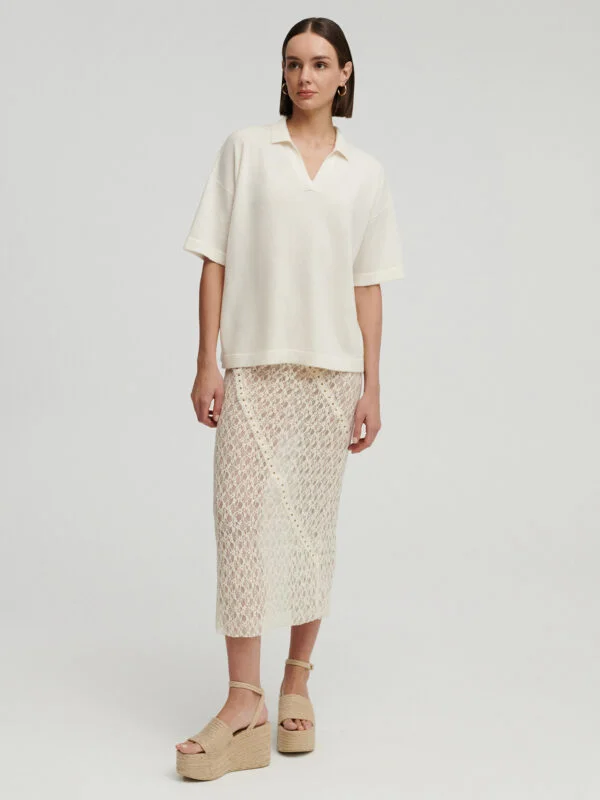 NEMA kaszmirowy sweter z krótkim rękawem pastelowy żółty
